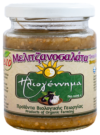 Ώριμες επιλεγμένες μελιτζάνες από τα κτήματά μας ψήνονται στα κάρβουνα. Ακολουθεί άμεσα η αφαίρεση του φλοιού της και σε ανοξείδωτο δοχείο ομογενοποιούμε την ψημένη μελιτζάνα με τα υπόλοιπα υλικά (ξύδι- εξαιρετικό παρθένο ελαιόλαδο-σκόρδο-αλάτι Μεσολογγίου). Γίνεται η εμφιάλωση σε αποστειρωμένα βάζα και ακολουθεί η παστερίωση.