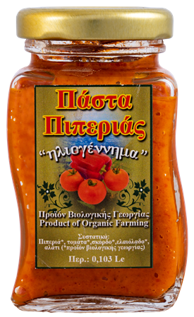 Συμπυκνωμένος πολτός πιπεριάς Φλωρίνης σε μίξη με πελτέ τομάτας 26 brix , με προσθήκη εξαιρετικού παρθένου ελαιόλαδου, σκόρδου και λίγου αλατιού Μεσολογγίου μας δίνουν την πάστα πιπεριάς.